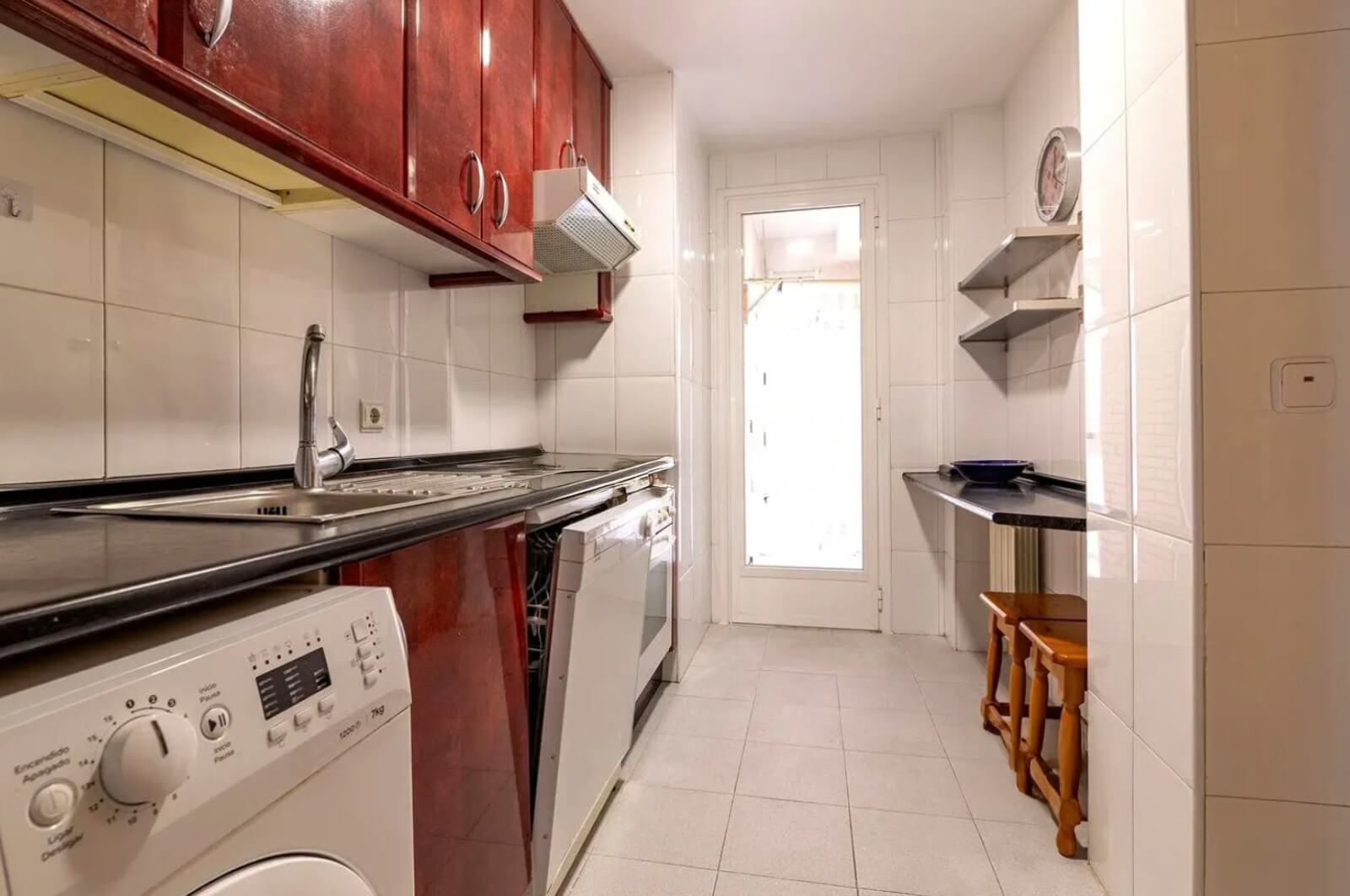 Vivienda compuesta por salón, cocina amueblada y equipada, con acceso a tendedero cerrado y cubierto, dos dormitorios dobles, y dos cuartos de baño, uno de ellos en suite en el dormitorio principal.