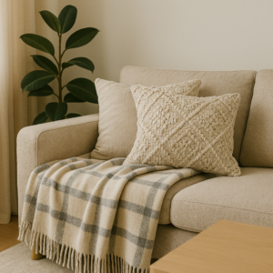Los textiles son protagonistas indiscutibles en la decoración de invierno. Introducir materiales suaves como lana, terciopelo, pana o forro polar no solo aporta calidez visual, sino también térmica.